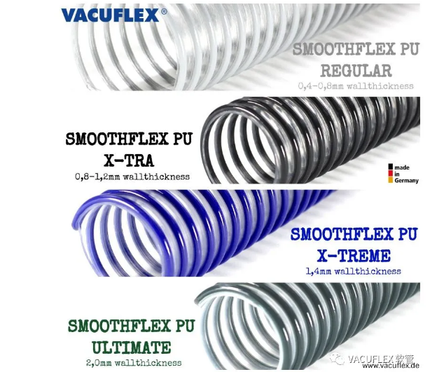 VACUFLEX®很高興向您介紹VACUFLEX®螺旋軟管- SMOOTHFLEX。該系列是一款熱塑性螺旋軟管,內(nèi)壁非常光滑。憑借其特殊結(jié)構(gòu),將材料優(yōu)化和提高產(chǎn)品的耐用性相結(jié)合,使這款軟管具有相當(dāng)強(qiáng)的市場(chǎng)競(jìng)爭(zhēng)力。